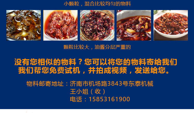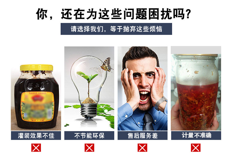 適用范圍:小型辣椒醬灌裝機(jī)主要適用于那些含顆粒的顆粒漿狀流體、半流體、膏體、醬狀類(lèi)的物料灌裝,各種勻質(zhì)醬料、火鍋底料、老干媽辣椒醬、干煸牛肉醬、泡椒、牛肉粒醬、香菇丁醬、八寶菜、蘿卜丁、含干煸臘肉丁、辣子雞丁、油炸花生等大顆粒、含油量少等干煸辣椒醬的灌裝。