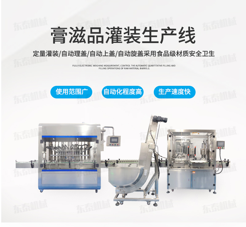 另外我們東泰公司可根據(jù)客戶自己的所需進(jìn)行選擇,公司主打產(chǎn)品有醬料灌裝機(jī),自動(dòng)灌裝機(jī),液體灌裝機(jī),灌裝生產(chǎn)線,等等設(shè)備提供個(gè)性化定制服務(wù),不僅能夠使膏體自動(dòng)灌裝機(jī)更好的對(duì)產(chǎn)品實(shí)行包裝,也是對(duì)企業(yè)發(fā)展的一種責(zé)任,根據(jù)目前以快節(jié)奏為標(biāo)準(zhǔn)的社會(huì)市場(chǎng)來講,采用電腦控制的膏體自動(dòng)灌裝機(jī)加工生產(chǎn)流水線灌裝準(zhǔn)確,精度達(dá)0.2%,這就給與膏體產(chǎn)品的生產(chǎn)幫了一個(gè)大忙。